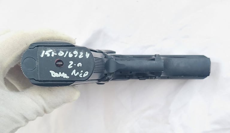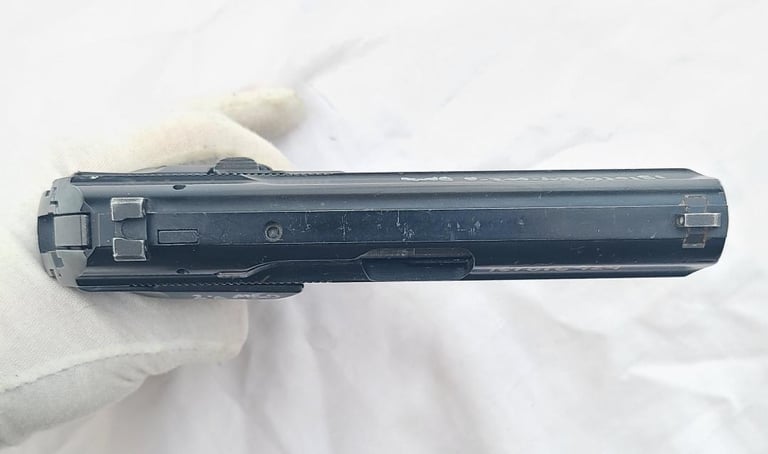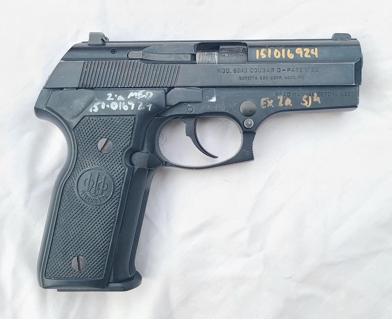 Here we have a Beretta model 8040 Cougar D in .40 S&W. The gun is was a police seizure and has various numbers painted on it. Other than the numbers, it is in excellent good condition with only minor marks. Appears to be in perfect working order.