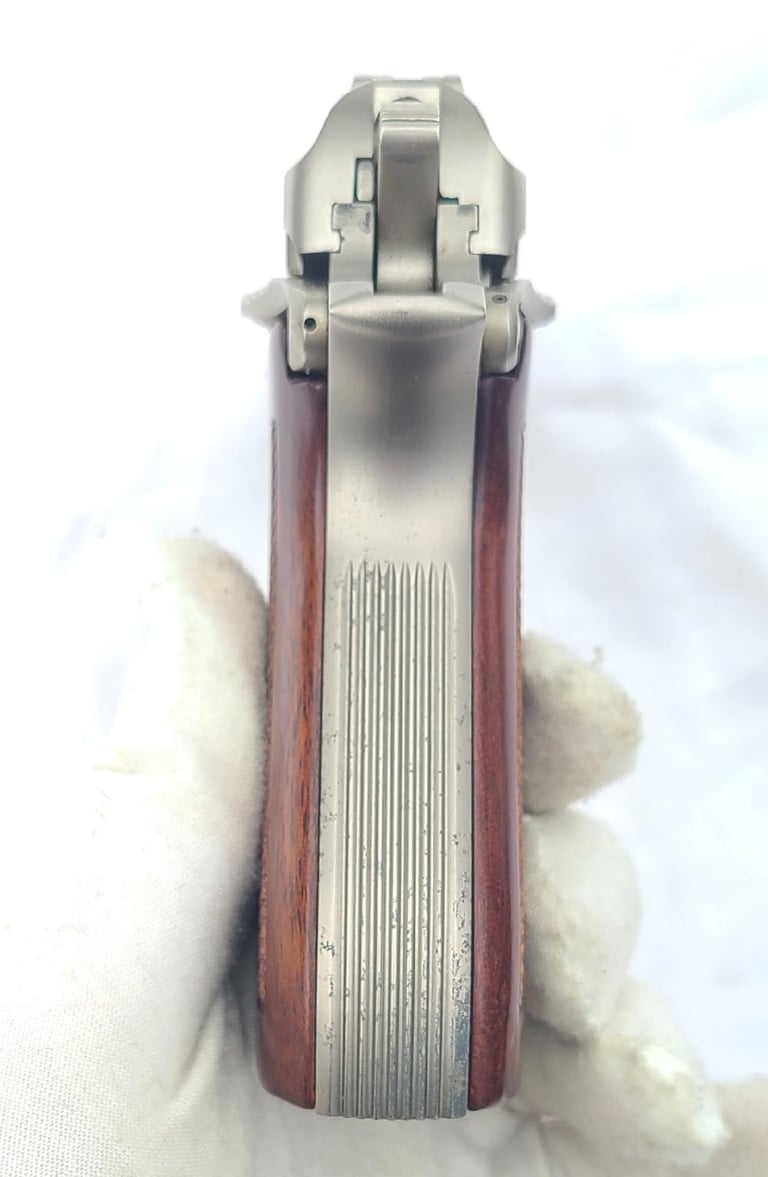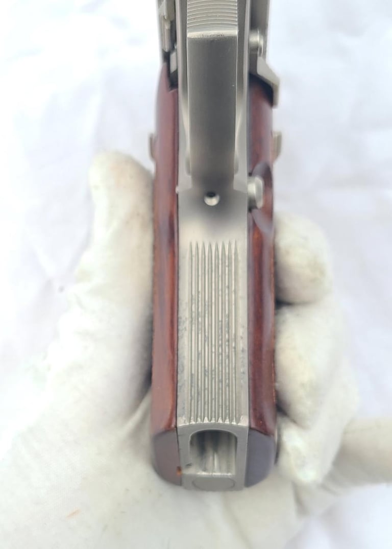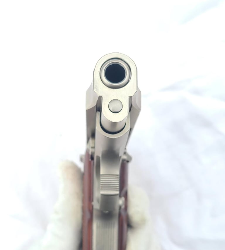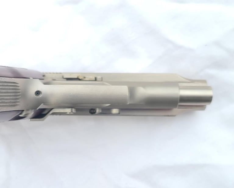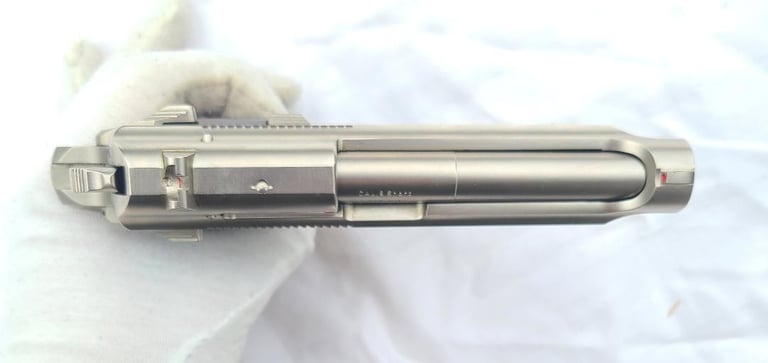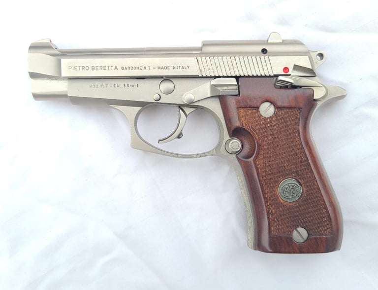 Here we have a Beretta model 85F 380 with nickel finish. Pistol is in very good condition overall with a some flaking of the finish on the front strap and back strap. It appears to be in proper working order. Comes with two magazines, cleaning tool, paperwork, original case and cardboard shipping sleeve.