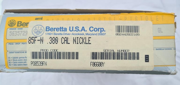 Beretta 85F Nickel 380 $1150