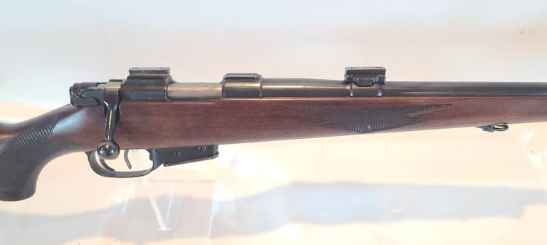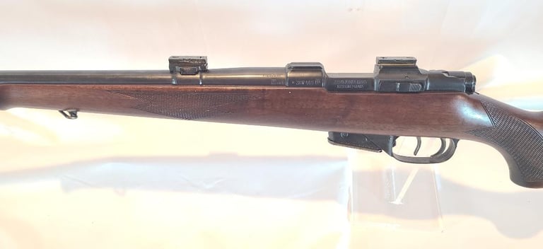 Here we have a very nice Brno ZKW-465 in .22 K Hornet. The barrel measures approximately 23". The rifle features double set triggers and is fitted with scope blocks. Original chamber marking is 22x36 Ho with Kilbourn added indicating the K Hornet conversion.