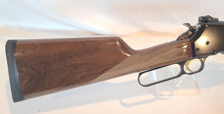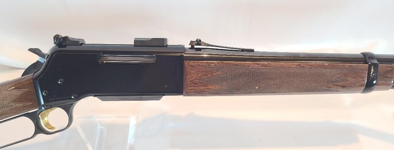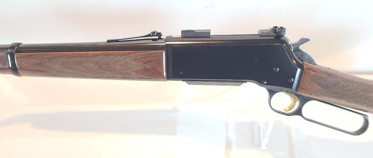 There we have a near new in box condition Browning BLR lightweight in .358 Winchester. This rifle has a 20" barrel and straight grip stock. Rifle is lightly used with only some very light handling marks in the wood. It is fitted with Leopold bases. It comes with original box. Box is in very good condition.