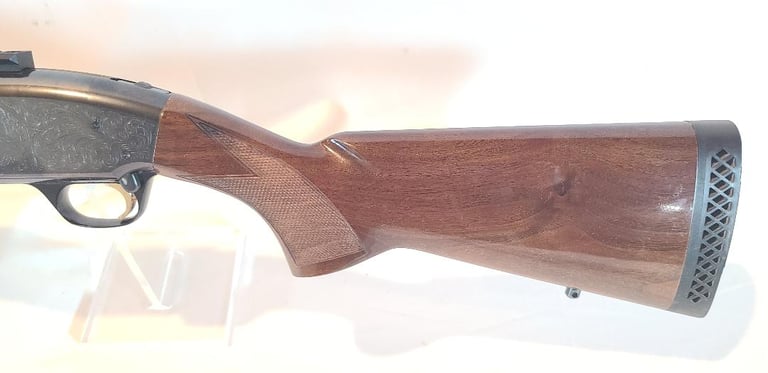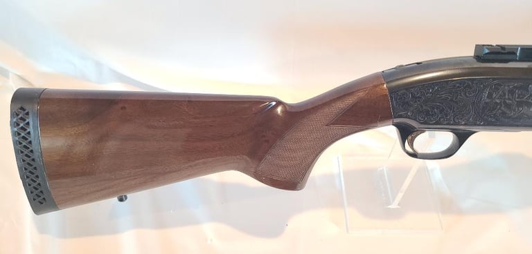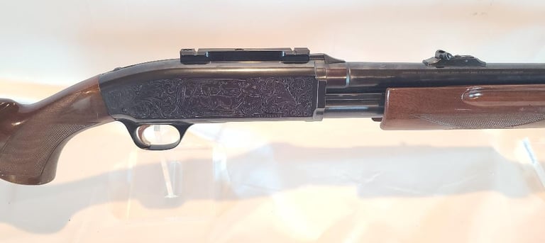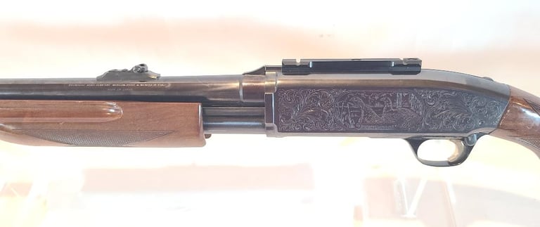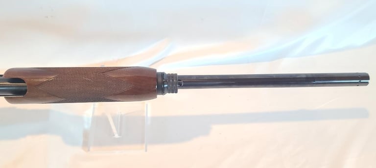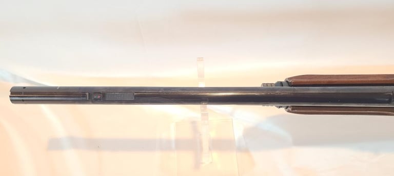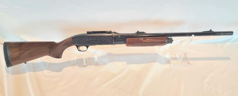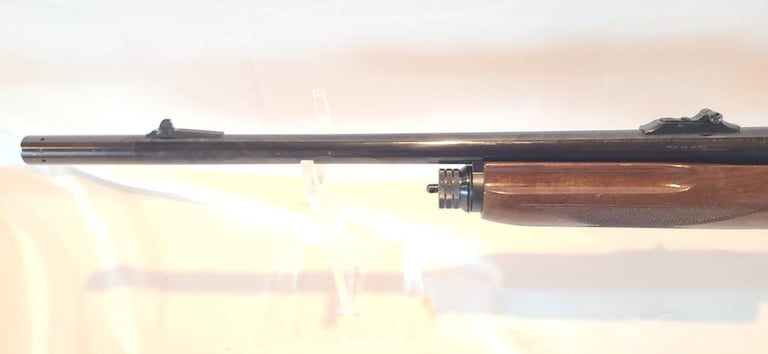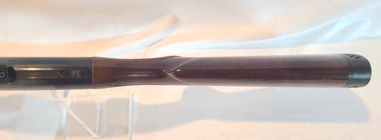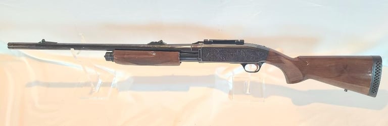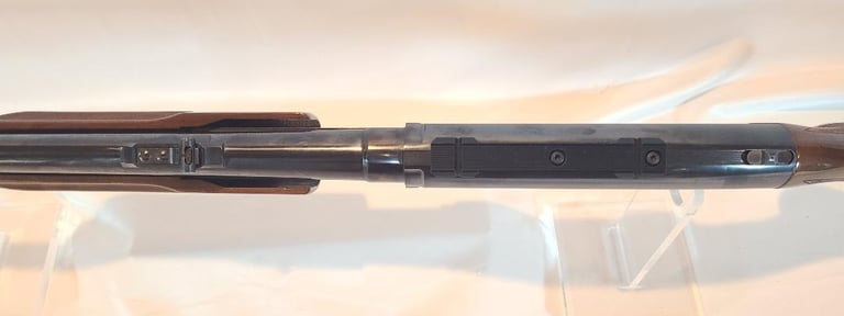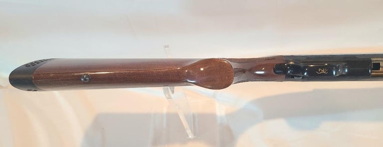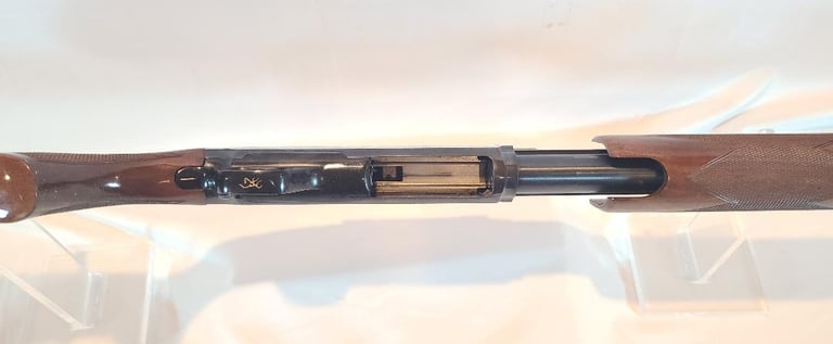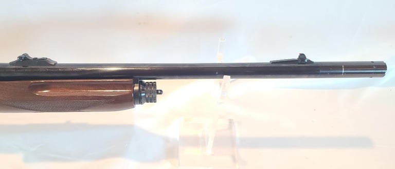Here we have a Browning BPS Game Gun 12 gauge with 20.5" barrel. It is equipped with rifle sights and optics rail, and it is fitted with an extended, ported, rifled choke. The shotgun is in excellent condition overall. There is a noticeable scratch on the choke tube, but other than that there are only minor handling marks visible. It appears to function properly and the bore is bright.
