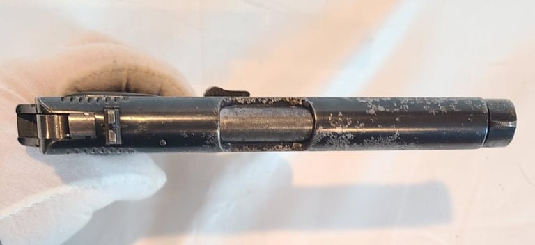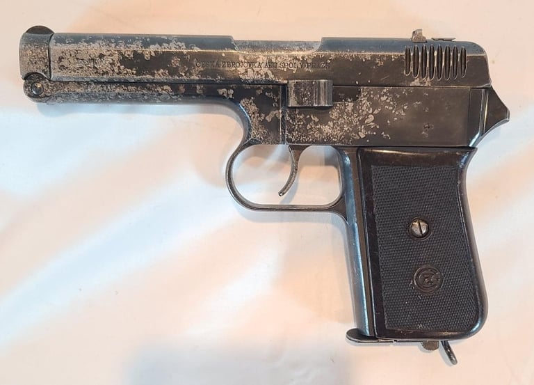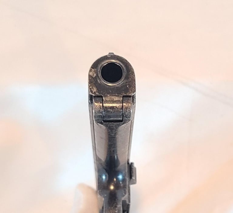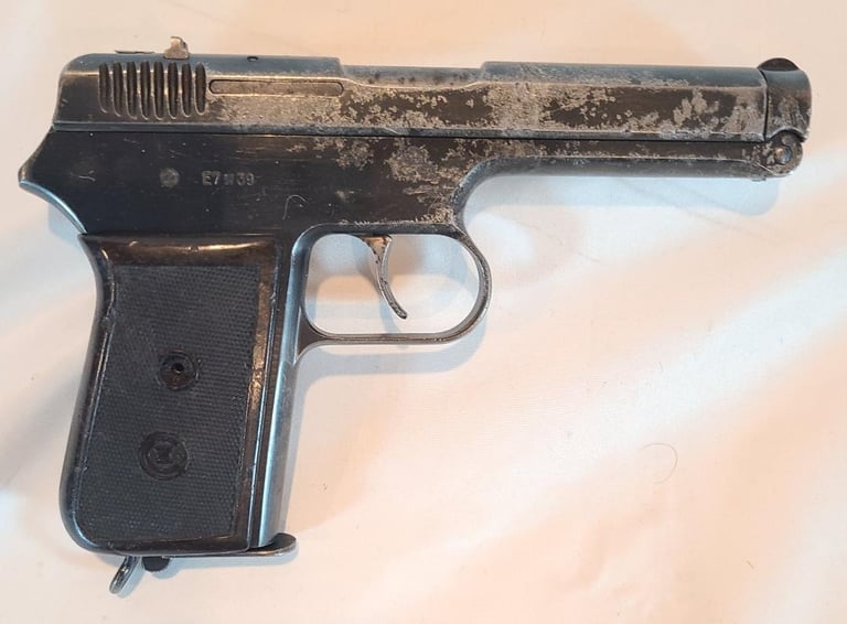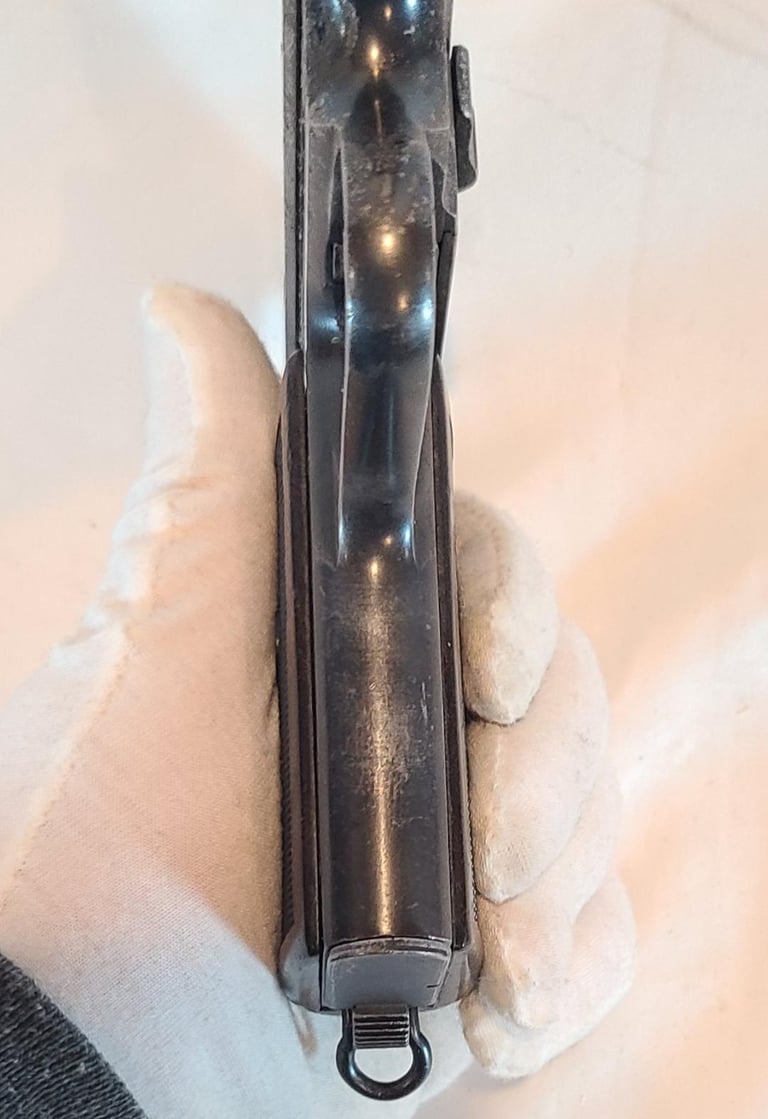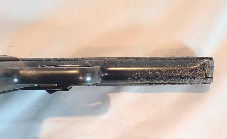 Here we have a Czech CZ VZ 38 in 380 ACP/ 9mm Kurtz. The gun is in fair condition. It appears to have had a good bit of corrosion that was cleaned off most of that is fairly shallow except for a few spots on the right and all the markings are legible. Also shows a little fading of the finish on the front strap. The pistol appears to be in good working order and the bore is bright with no signs of corrosion.