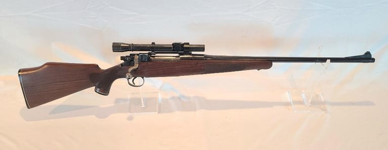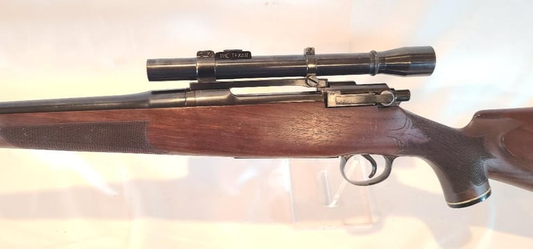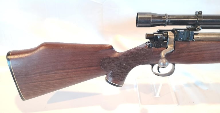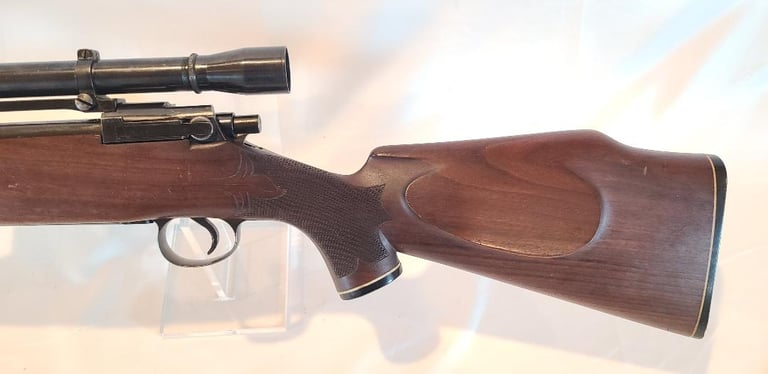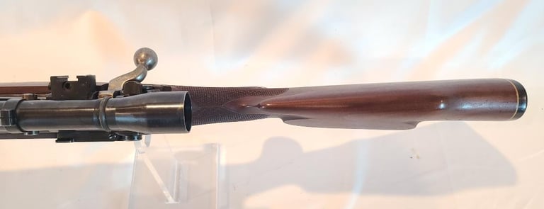 Rifle is in very good condition with a bit of fading of the finish on the floor plate and some minor handling marks. Appears to function properly and bore is bright. Scope is slightly hazy but still fairly clear and reticle is sharp.