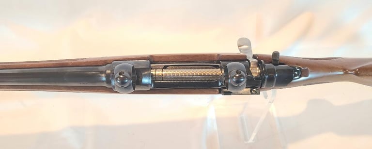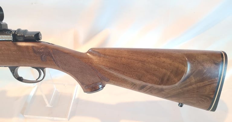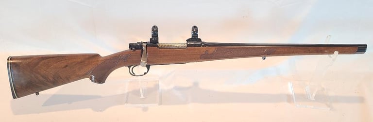 Here we have a beautiful Mark X Mauser in 7x57 Mauser made by Zastava in Yugoslavia and imported by Interarms. Features include 18" barrel, nicely figured full length Mannlicher style stock with checkering and carved embellishments, spoon style bolt handle, jeweled bolt and bolt stop.