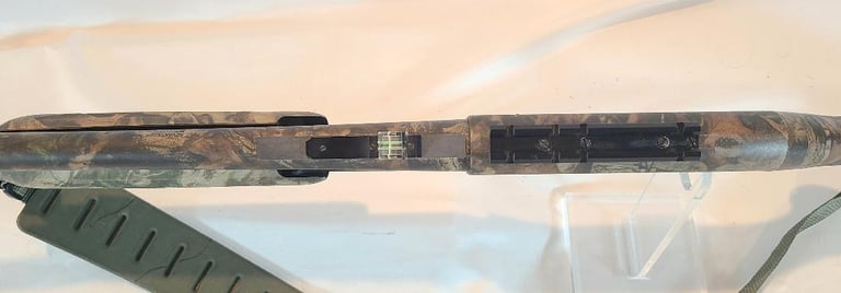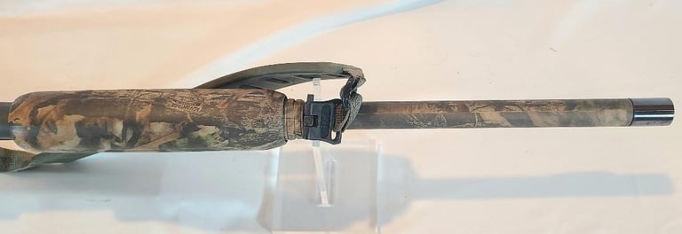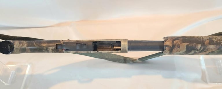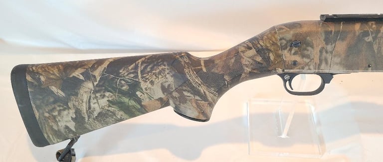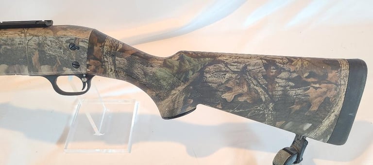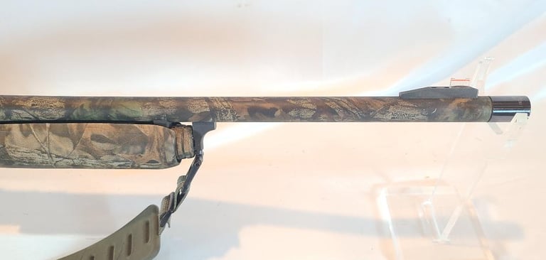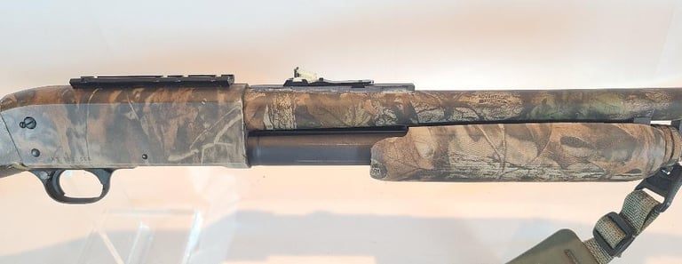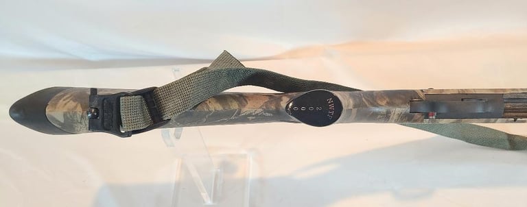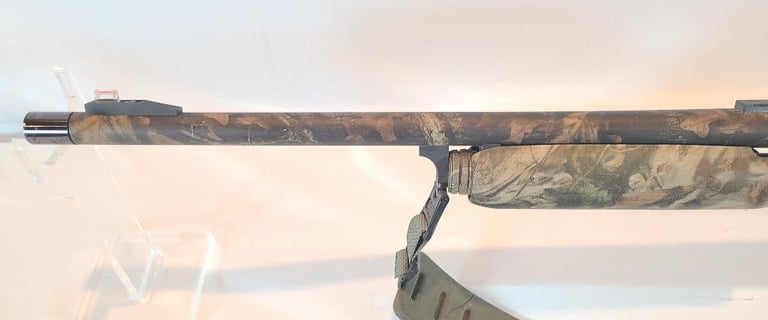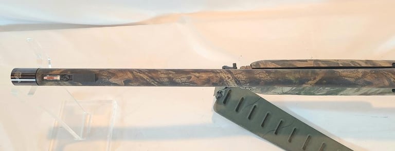 Here we have an Ithaca model 37 Turkeyslayer in 12 gauge. This was a limited edition model released when the model 37 was named the NWTF gun of the year in 2000. It features a 22" barrel with 3" chamber, fiber optic sights and advantage timber camo finish.