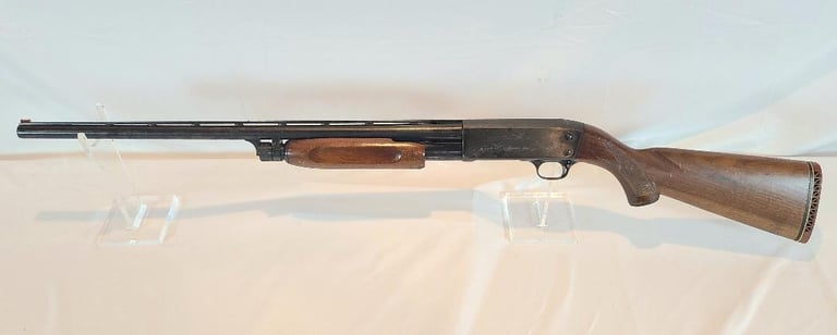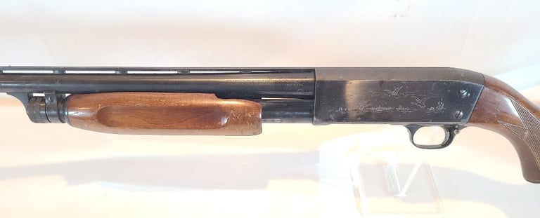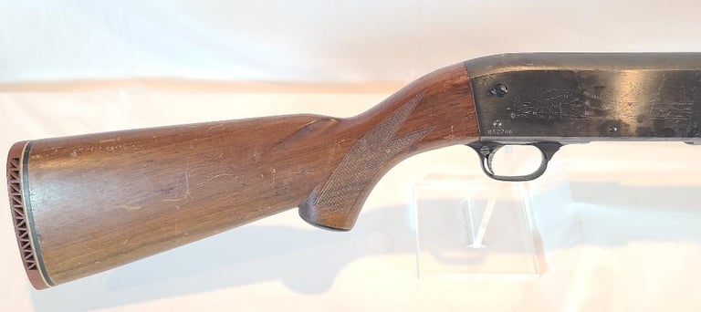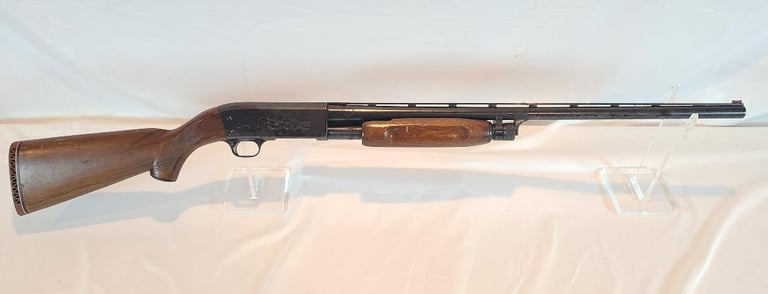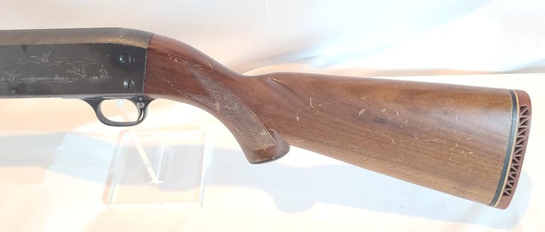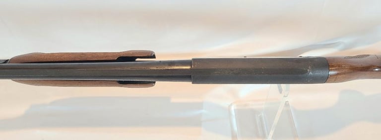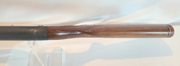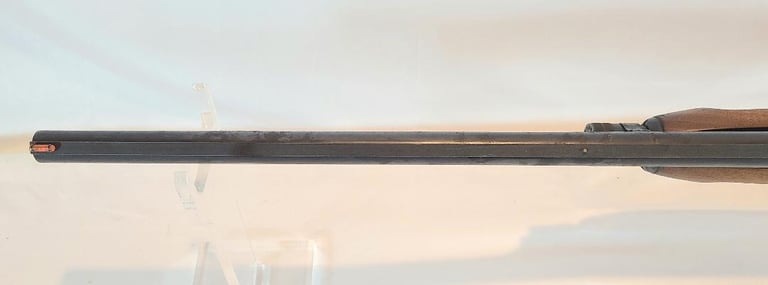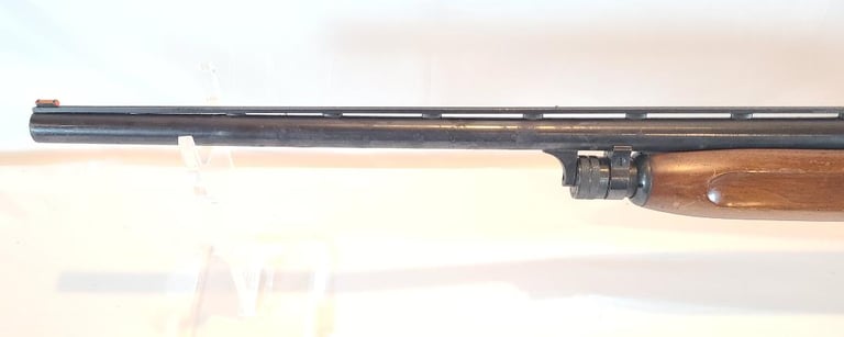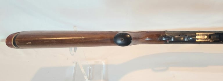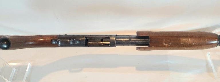 Here we have an Ithaca 37R Deluxe in 12 gauge with 26" vent rib improved cylinder chokeed barrel. The gun is in fair condition. The metal shows a scattering of minor surface rust with more heavy rust on the underside of the barrel. The stock shows a variety of shallow scratches, the forend has some dings and scratches. The bore shows some streaking and minor pitting. The gun appears to function properly. It does slam fire.