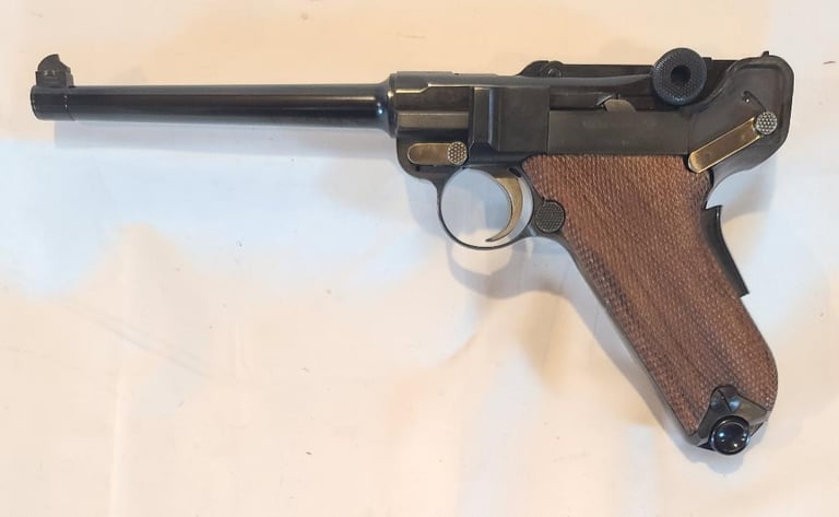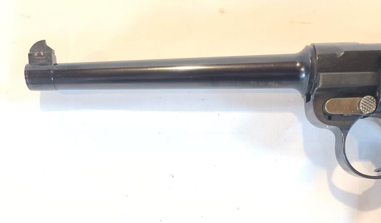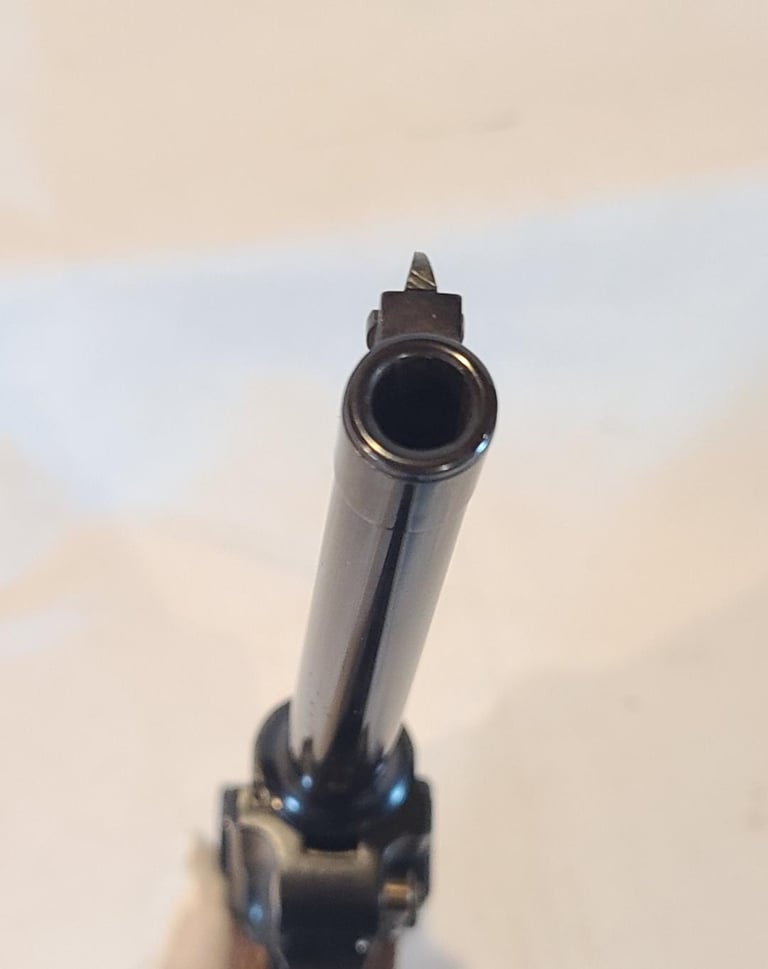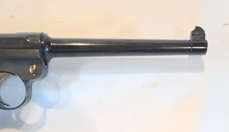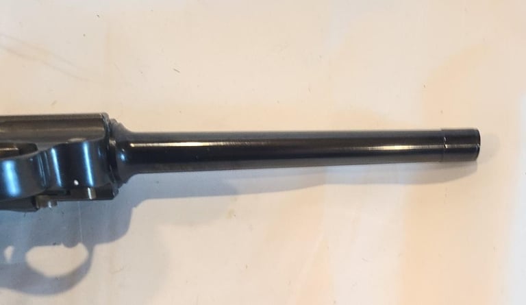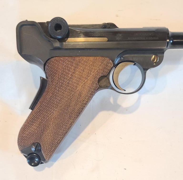 Here we have a new in box condition Interarms imported Mauser American Eagle Luger in .30 Luger with 6" barrel. The gun is like new and appears unused, but does show some very minor signs of long-term storage. Comes from the estate of a collector that was reportedly the original owner and never fired it. Included is the original box extra magazine, tool, cleaning rod, test target, warranty card and desiccant packet. Box has some discoloration.
