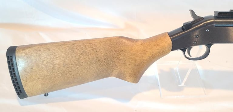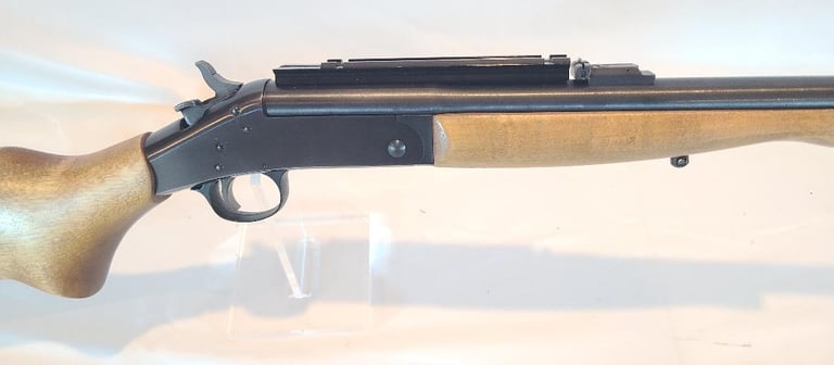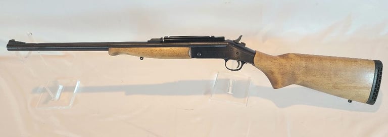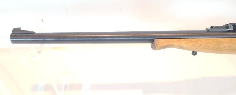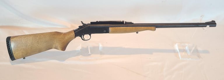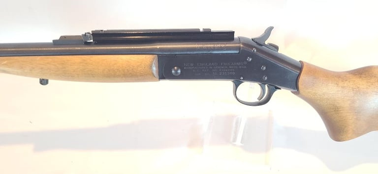 Here we have a New England firearms Handi Rifle SB2 with 22" .44 Magnum barrel. The barrel is fitted with iron sights and and optics rail, the sites are just barely visible over the rail. The rife was in excellent condition with some minor marks. It appears to function properly and the bore is mirror bright.