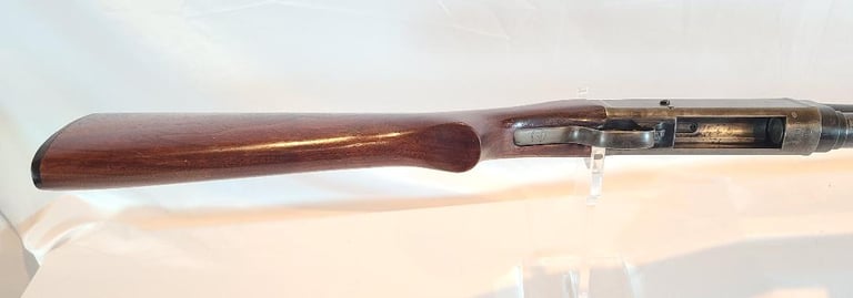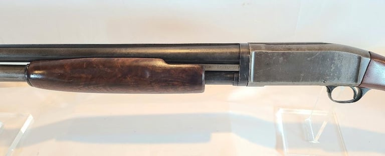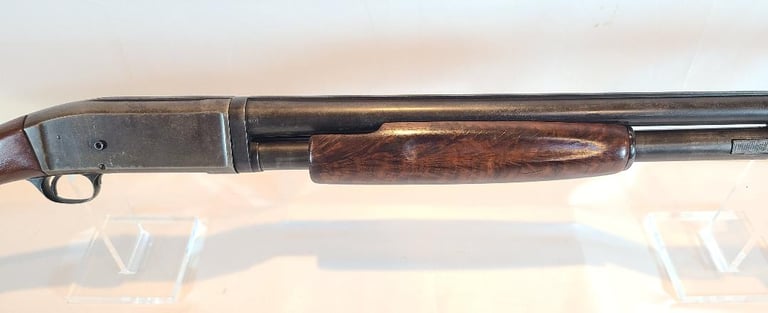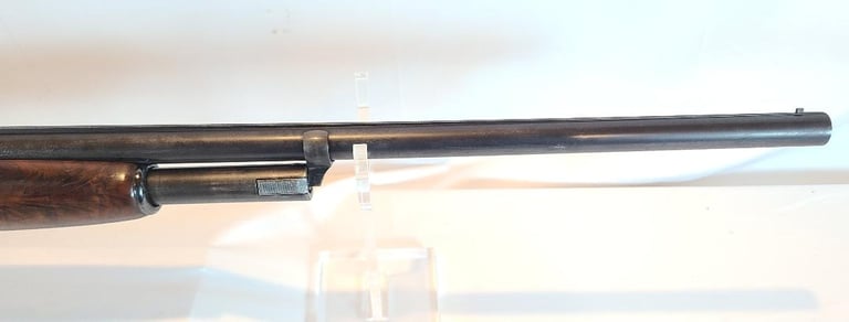 Here we have a Remington model 10 Trap Grade 12 gauge. It has a 30" solid rib barrel. The choke measures as improved modified. The gun is in good condition overall the finish on the receiver and trigger guard is somewhat faded. The barrel retains most of its finish with a little fading towards the rear. The wood is excellent with only very minor marks. Appears to function properly. The bore is mostly bright.
