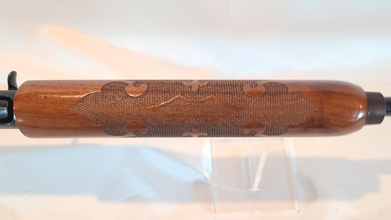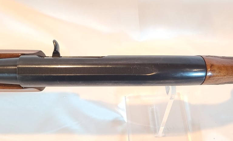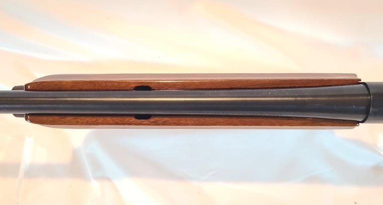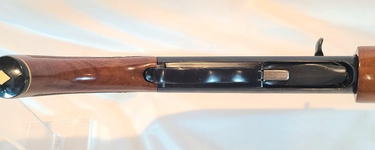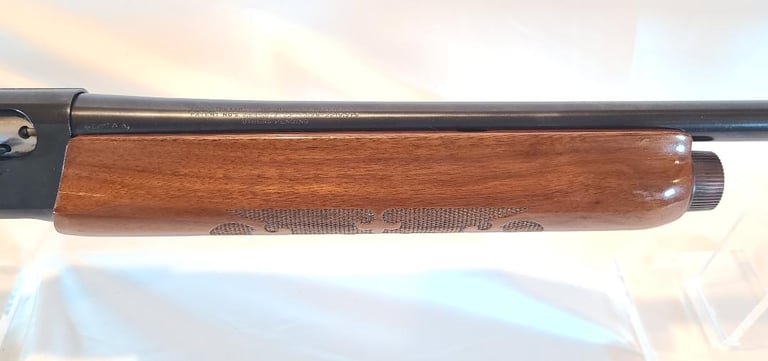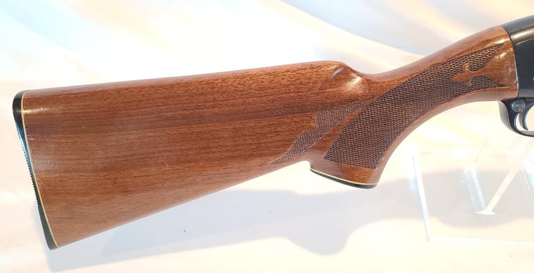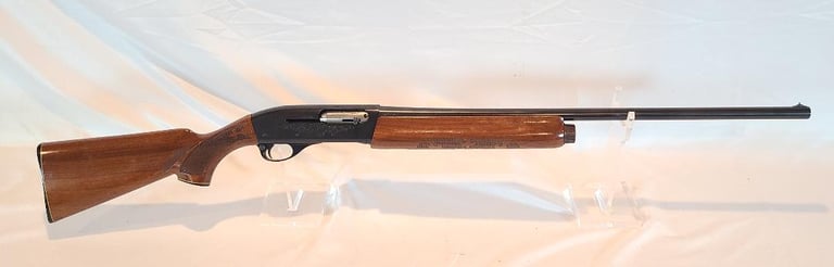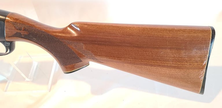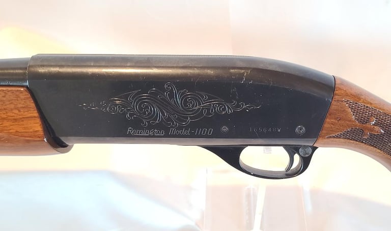 Here we have an excellent Remington Model 1100 in 16 gauge. It has a 26" mod choke barrel. The gun is an excellent condition overall. There are a few small scratches on the receiver, there is some stubborn white residue on the left side of the stock near the rear, and there are various light handling marks visible on close inspection. The gun appears to function properly and the bore is bright.