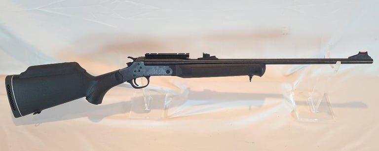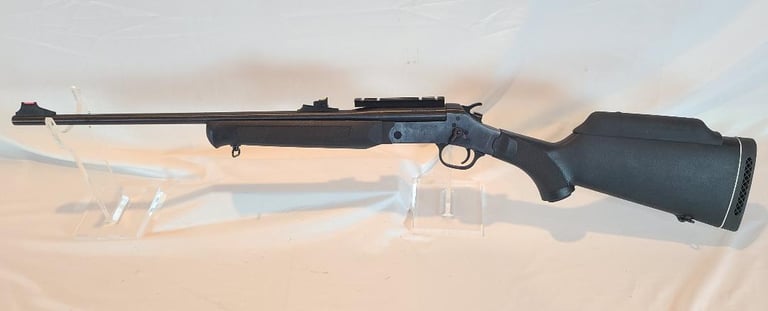 Here we have a Rossi single shot. It is currently fitted with a 223 barrel but also comes with a 20 gauge barrel. The 223 Barrel is 23" and has fiber optic sights and a scope rail. The 20 gauge barrel is 28". The gun is in excellent condition and appears to function properly. The rifle bore looks a bit dirty. The 20 gauge barrel is in a bag and covered in oil.