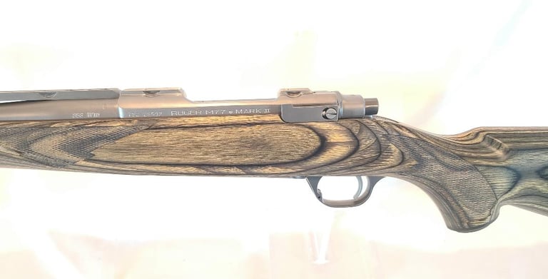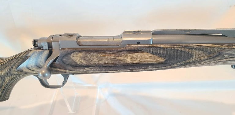 Here we have an example of the rare Frontier variant of the Ruger M77 Mark II in the particularly rare 358 Winchester. Features include 16.5" barrel quarter rib for mounting scout style scope, stainless construction, laminated stock. The rifle is in near perfect condition with only a few minor handling marks. Appears to function properly. Bore is bright.