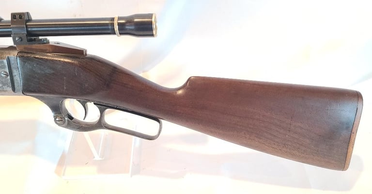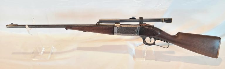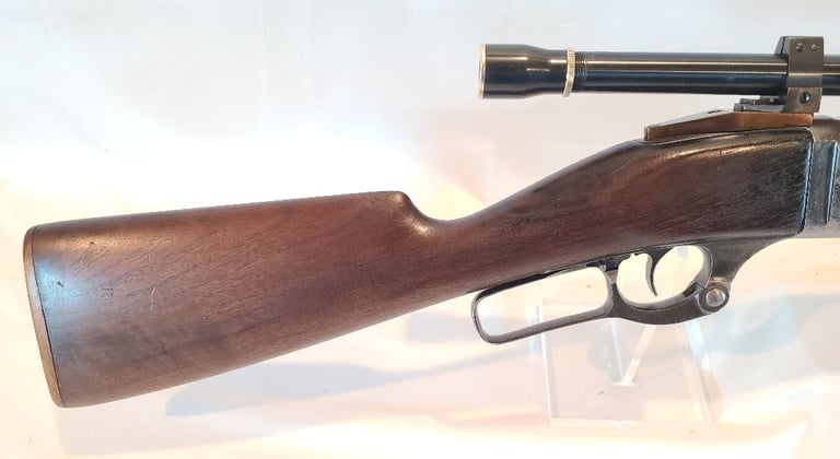 Here we have a Savage Model 1899 takedown in .22 Savage Hi Power. Barrel measures 22". Serial number is 161050 dating the rifle to 1914. It is equipped with a JC Higgins 4x Scope.