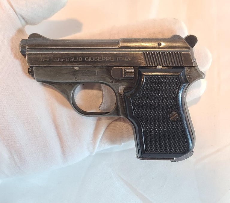 Here we have a Tanfoglio GT27 in 25 ACP. The finish is faded but the pistol appears to be in good working order.