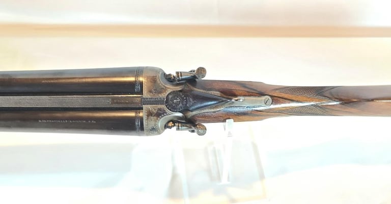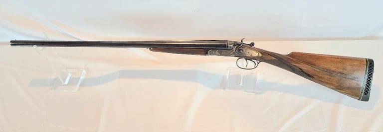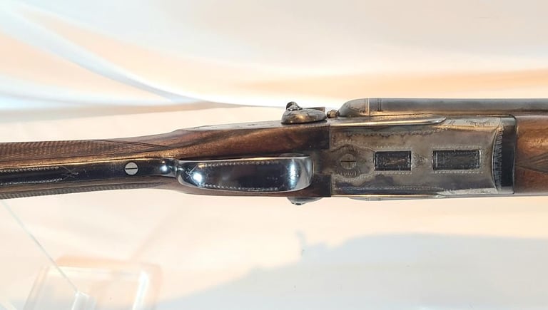 The gun is in very good condition overall. Receiver is excellent, barrels and trigger guard show minor finish loss, the wood shows some handling marks. The gun appears to function properly, action locks up tight and the bore are bright.