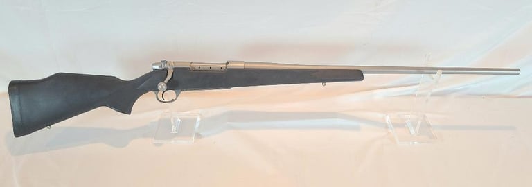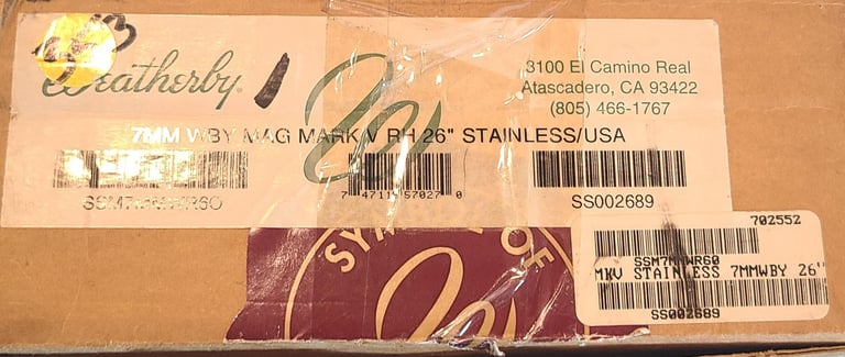 Here we have a new inbox condition Weatherby Mark V Stainless in 7mm Weatherby Magnum with 26" barrel. The gun appears unused and comes with box, paperwork, lock. Box has some damage.