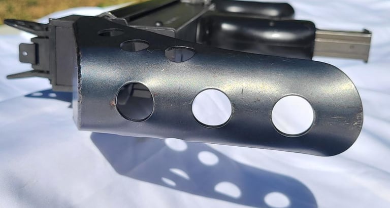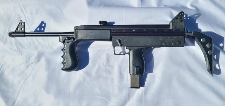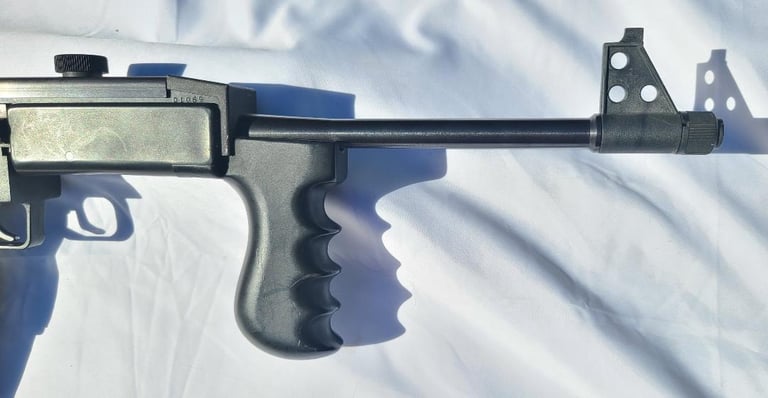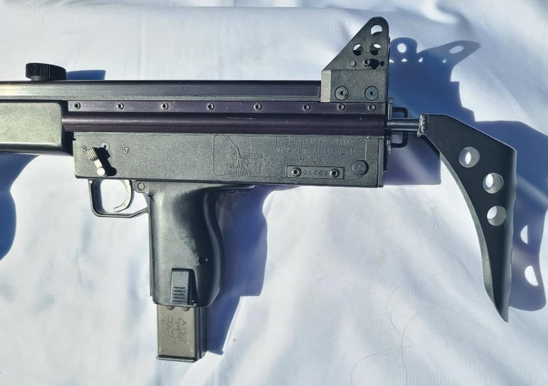 Here we have a Weaver Arms Nighthawk 9mm carbine. It is in excellent condition with a handful of small marks, such as a scratch on the left side of the foregrip and a couple marks on the buttplate. the bore is excellent and it appears to be in proper working order. It comes with five 25 round magazines.