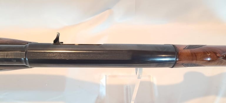 Here we have a Winchester Model 50 20 gauge with 26" vent rib barrel. The barrel is marked WS-1, but looks like the choke has been opened up. The barrel shows a proof mark at the breach, to the left of the rib. Stock is fitted with a Winchester recoil pad.