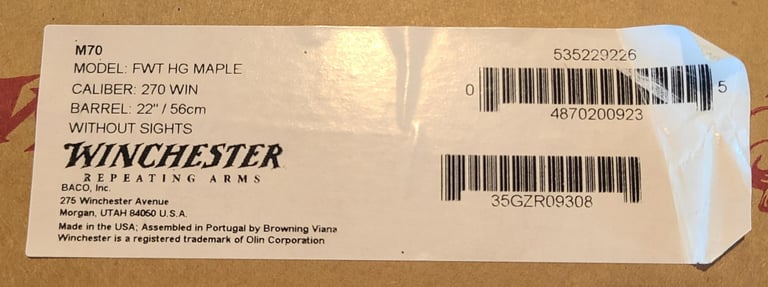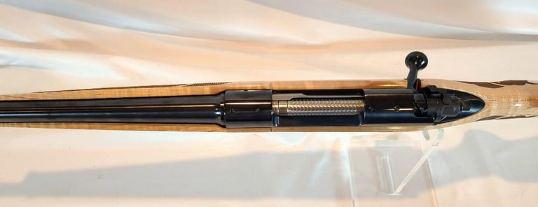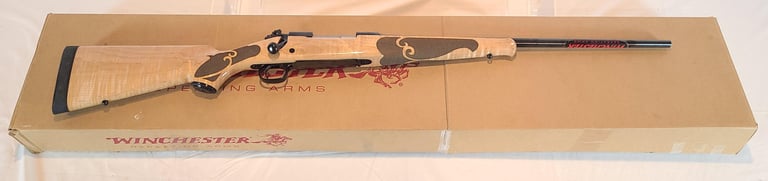 Here we have a new one box condition Winchester Model 70 featherweight high grade with AAAA Maple stock in .270. it has a 22" barrel. The rifle shows some light signs of the action being cycled but otherwise appears unused and still has the sticker on the barrel. Comes with original box. Box is in very good condition.