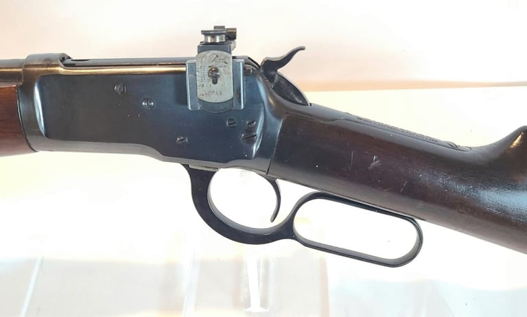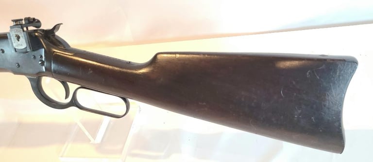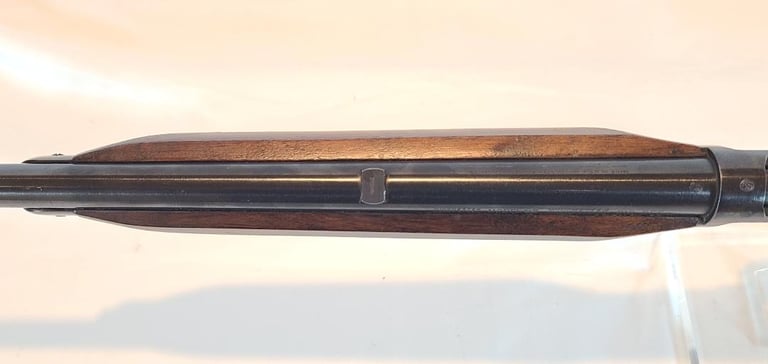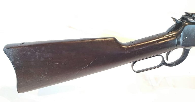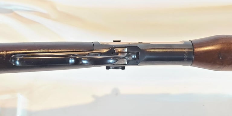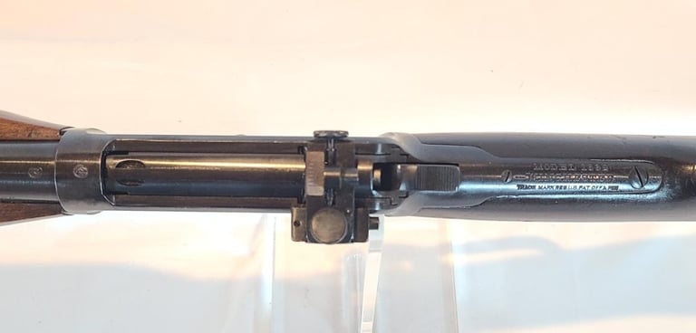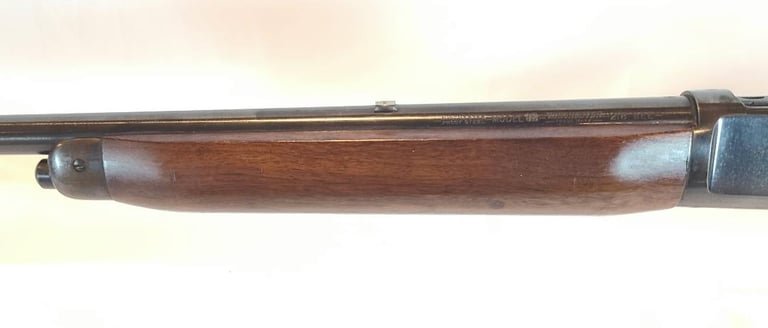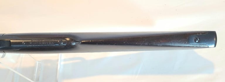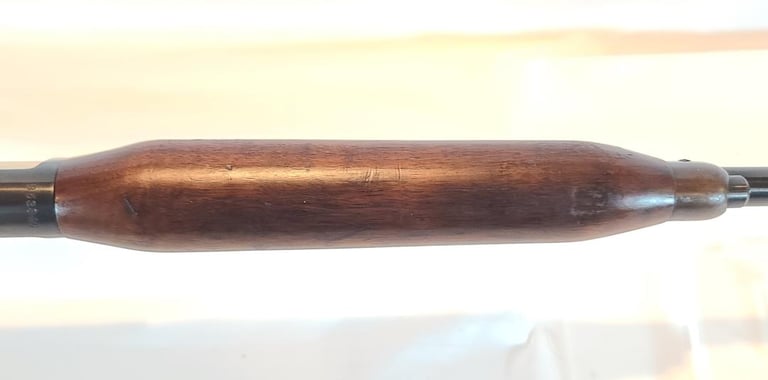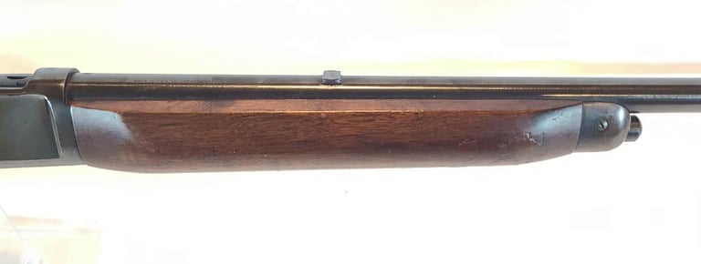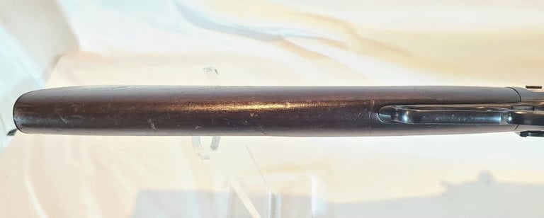 The metal is in very good condition with some minor freckling on the receiver, a few spots of finish loss on the underside the barrel and a little fading on the lever. The wood shows a variety of shallow dings and scratches, the stock is darker in color than the forend. Appears to be in perfect working order. The bore is bright with some minor wear.