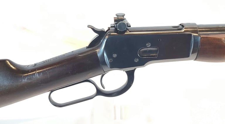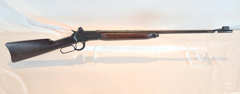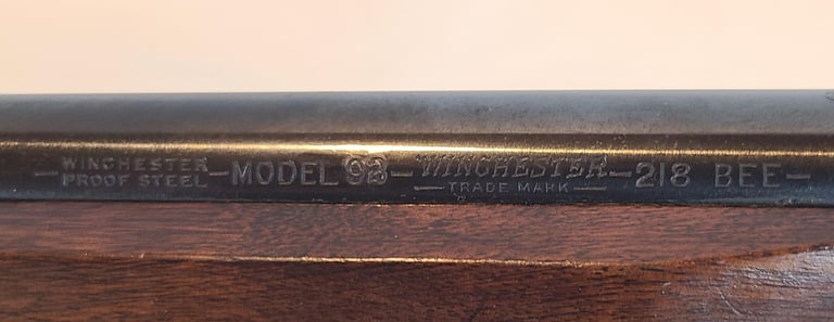 Here we have a customized Winchester model 1892 in .218 BEE. Originally manufactured in 1918, later a 24" model 92 .218 BEE barrel was installed along with a model 65 style forend and button magazine, as well as a Lyman peep sight.
